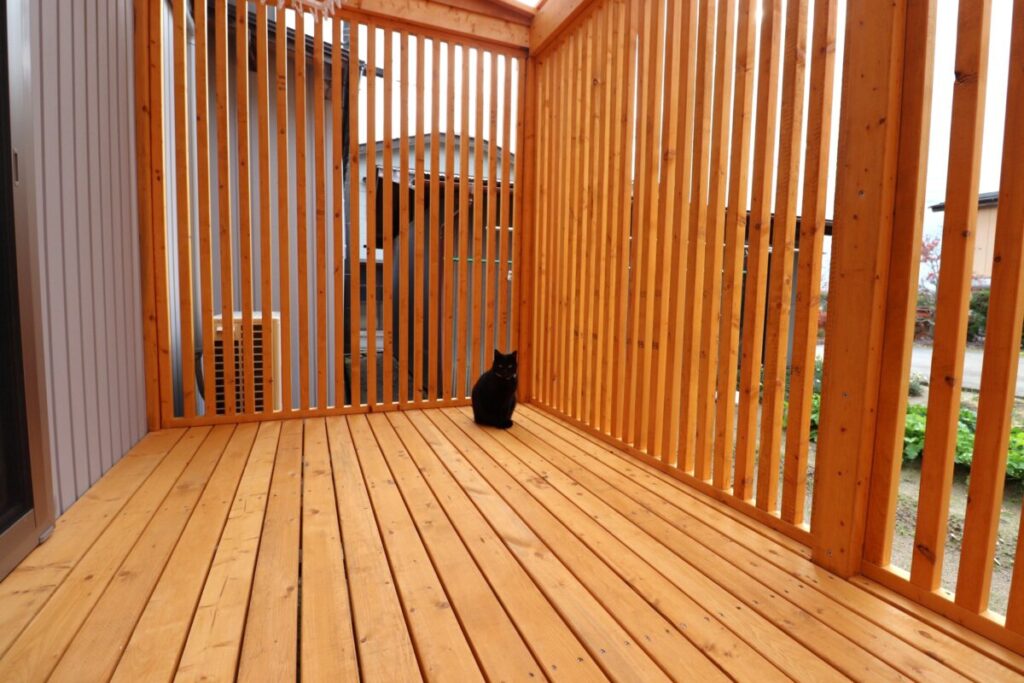 ベランダは猫が外を眺めやすく、自然光と風を感じながら快適に過ごせる空間です。