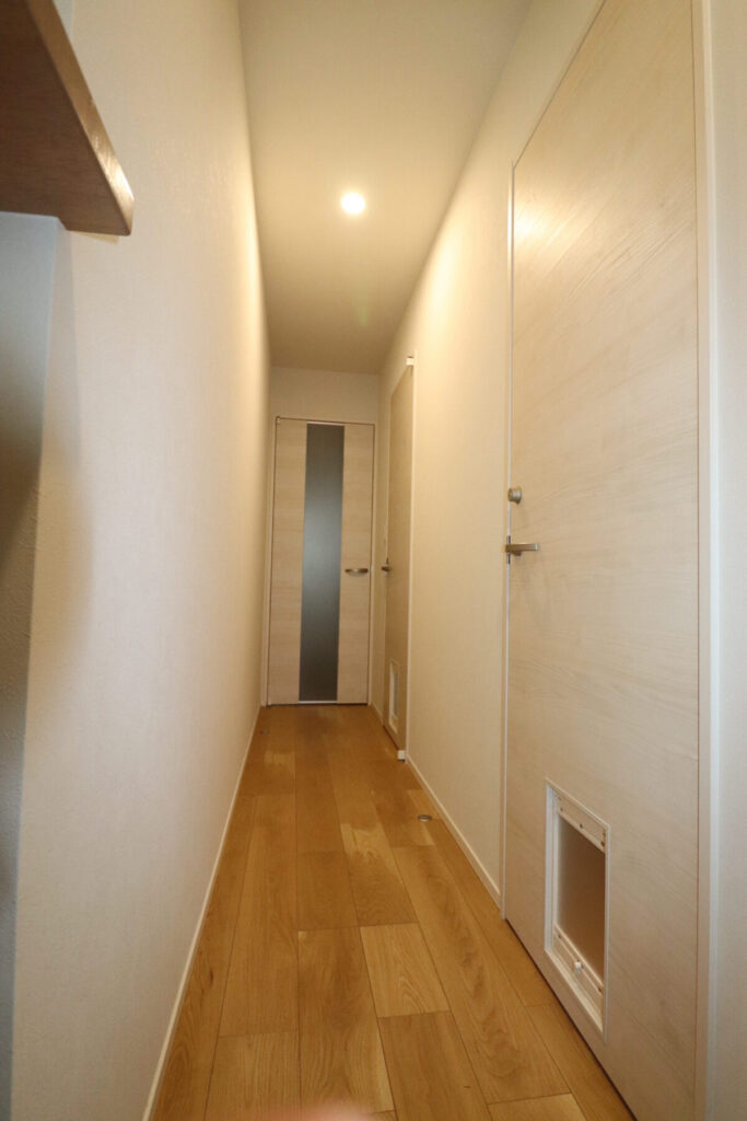 猫が自由に行き来できるよう、ドアにキャットドアを設置しました。