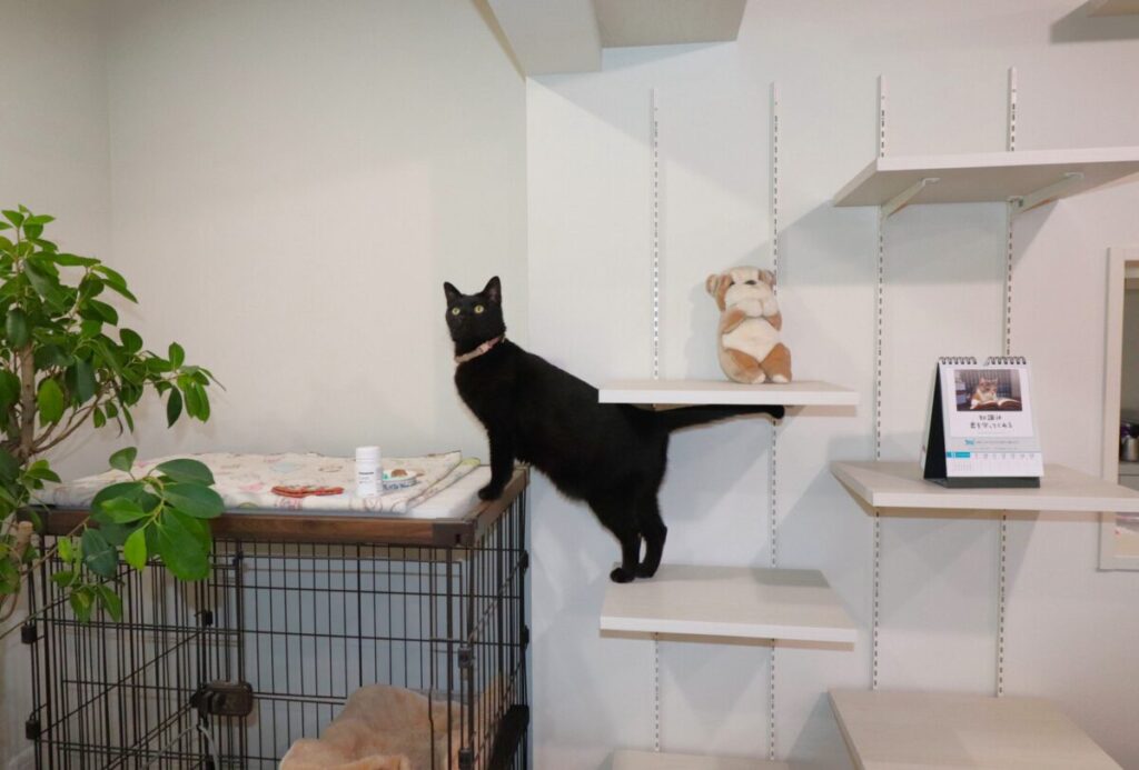 お気に入りの居場所や見晴らしの良い棚もあり、猫がのびのび過ごせる空間です。