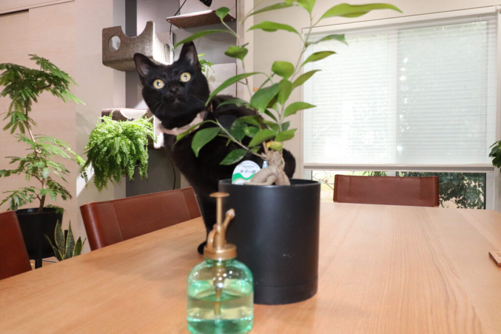 リビング・ダイニングには、猫も安心して過ごせる観葉植物を取り入れ、家族全員がゆったりとくつろげる空間に仕上げました。
